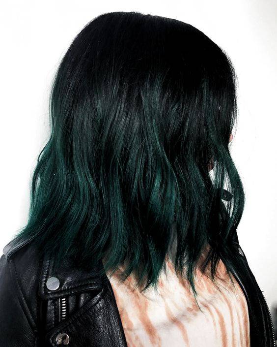 Ombre hijau gelap bisa terlihat memukau saat digunakan pada rambut hitam alami. Warna rambut hijau gelap. Warna cat rambut hijau gelap.